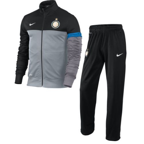 PRODOTTO UFFICIALE E ORIGINALE 100% Tuta ufficiale da panchina F.C. INTER da ragazzo/bambino. Tessuto 100% poliestere DRY-FIT, manica lunga, zip intera frontale, tasche laterali, polsini con elastico finale. Pantaloni con girovita elastico, tasche laterali con zip. Loghi INTER e Nike ricamati.