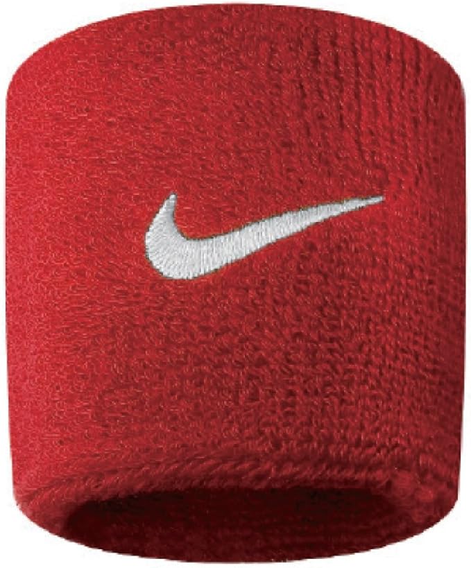 NIKE SWOOSH WRISTBANDS Polsini di Nike, ideali per lo sport. Tessuto: 72% Cotone 12% Nylon 11% Poliestere 4% Rubber 1% Spandex. Pacco di 2 fasce elastiche personalizzae con il marchio Nike.