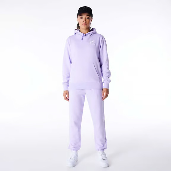 felpa new era con cappuccio lilla-logo bianco