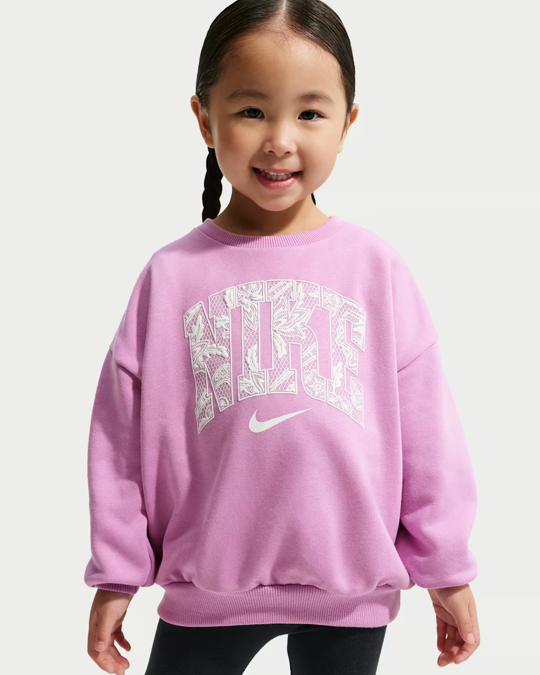 Noi di Nike crediamo che tutti siano atleti fin dal primo giorno, e questo completo coordinato in spugna francese è un modo comodo per equipaggiare il tuo piccolo atleta per giocare in tutta tranquillità. La maglia girocollo ha un taglio ampio e spalle scese che rilassano la vestibilità, mentre i pantaloni hanno una comoda cintura elasticizzata per una vestibilità comoda. Colore mostrato: Avorio chiaro Modello: 66N632-W69