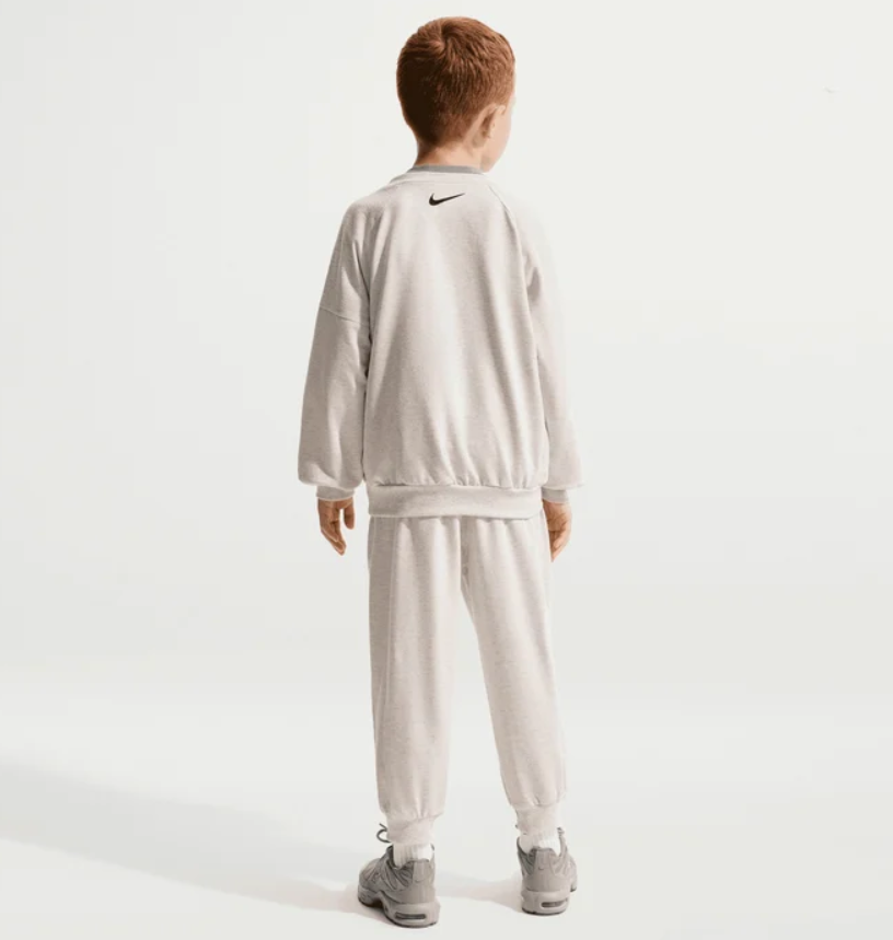 Noi di Nike crediamo che tutti siano atleti fin dal primo giorno, e questo completo coordinato in tessuto garzato è un modo comodo per equipaggiare il tuo piccolo atleta per giocare in tutta tranquillità. La maglia girocollo ha un taglio ampio e spalle scese che rilassano la vestibilità, mentre i pantaloni hanno una comoda cintura elastica per una vestibilità comoda.