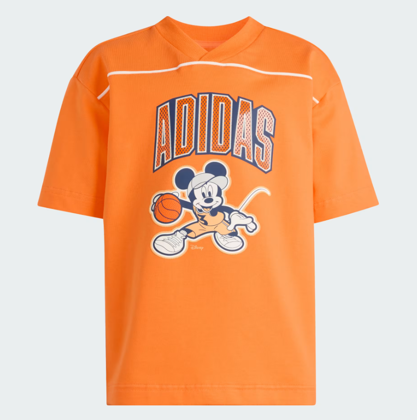 La t-shirt adidas Disney Mickey Mouse porta la magia Disney nelle avventure di tutti i giorni. Pensata per i bambini, questa t-shirt presenta una giocosa grafica di Topolino, che cattura l'energia esuberante degli stadi e lo spirito collettivo degli appassionati di sport. Realizzata in un morbido ed elasticizzato tessuto jersey, offre comfort e libertà di movimento per il gioco quotidiano. Con una vestibilità ampia, è perfetta da indossare a strati o da sola, per uno stile rilassato e casual. Il design con scollo a V aggiunge un tocco di stile moderno in più. Lascia che i tuoi piccoli esprimano il loro amore per Disney e lo sport con questa collaborazione tra adidas e Disney. Entra nel regno della magia e della scoperta con questa vivace t-shirt di Topolino.
