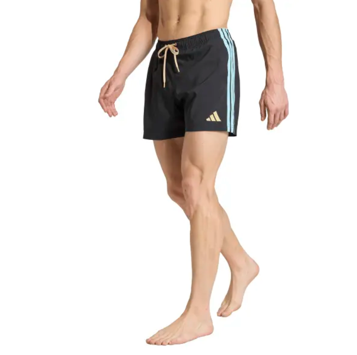 ADIDAS COSTUME DA BAGNO NERO-3STRIPS AZZURRO LOGO ORO UOMO