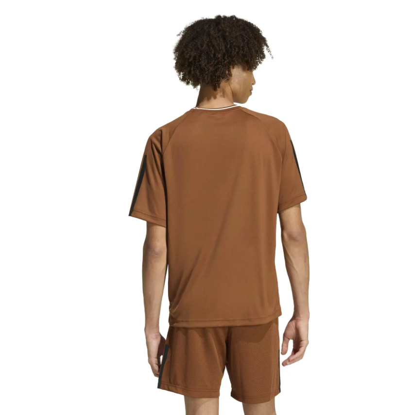 Il t-shirt in jersey House of Tiro x Common Goal è realizzato in tessuto interlock resistente per un comfort quotidiano. Le 3 bande stampate lungo le maniche e il collo a costine di ispirazione calcistica aggiungono un tocco di stile classico. I dettagli grafici si ispirano alla cultura calcistica messicana, completati da un logo adidas puffer sul petto e un'etichetta della collaborazione tra i due marchi all'interno