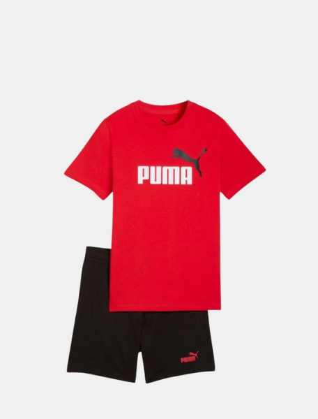 Puma set t-shirt e short nero e rosso bambino