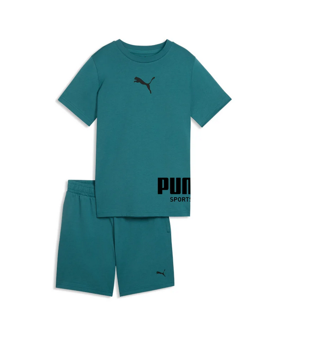 PUMA SPORT TEE SET PUMA 693335-01 Scopri il set estivo da ragazzo PUMA Sport 693335-41. Un completo coordinato composto da t-shirt e shorts in morbido jersey di cotone, ideale per garantire freschezza e libertà di movimento. Design moderno in verde ottanio con loghi PUMA neri a contrasto. Spedizione 48/72h.