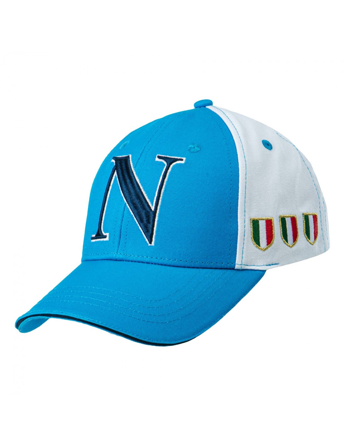 Il cappello da baseball SSC Napoli è un accessorio unico per i tifosi, con una distintiva combinazione di bianco e azzurro, riflettendo i colori iconici della squadra e della città di Napoli. Sul cappello sono ricamati i tre scudetti, simbolo del successo della squadra, aggiungendo un tocco esclusivo e valorizzando il pezzo per i veri sostenitori. Realizzato in 100% cotone, questo cappello offre comfort e traspirabilità duraturi, rendendolo adatto per tutte le stagioni e tutte le taglie grazie alla sua struttura regolabile.